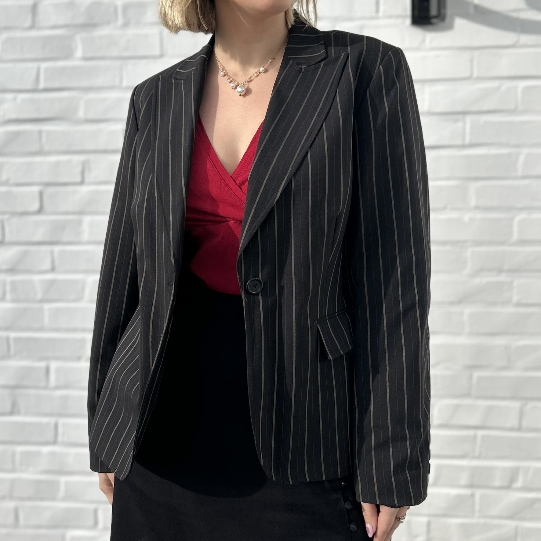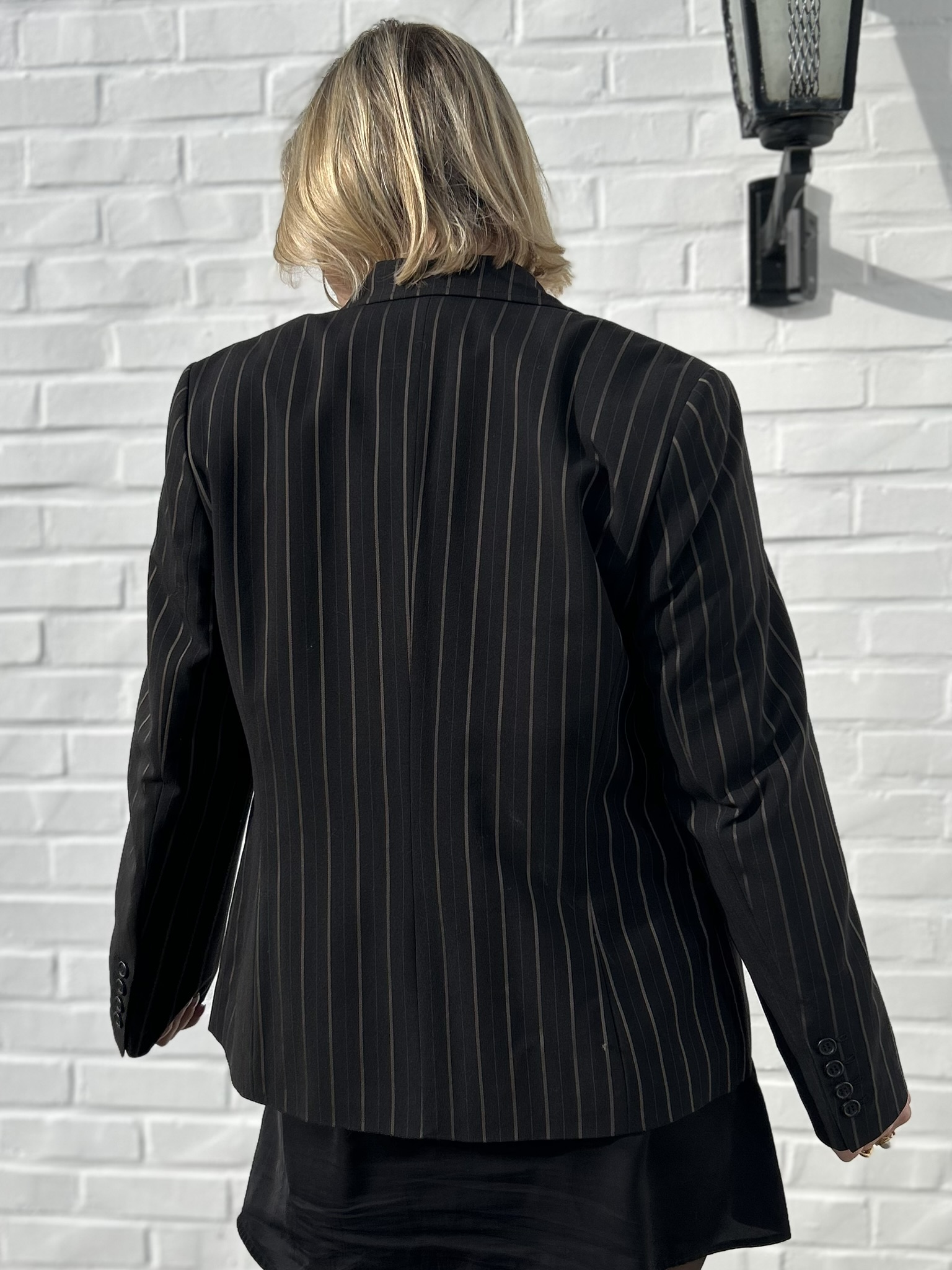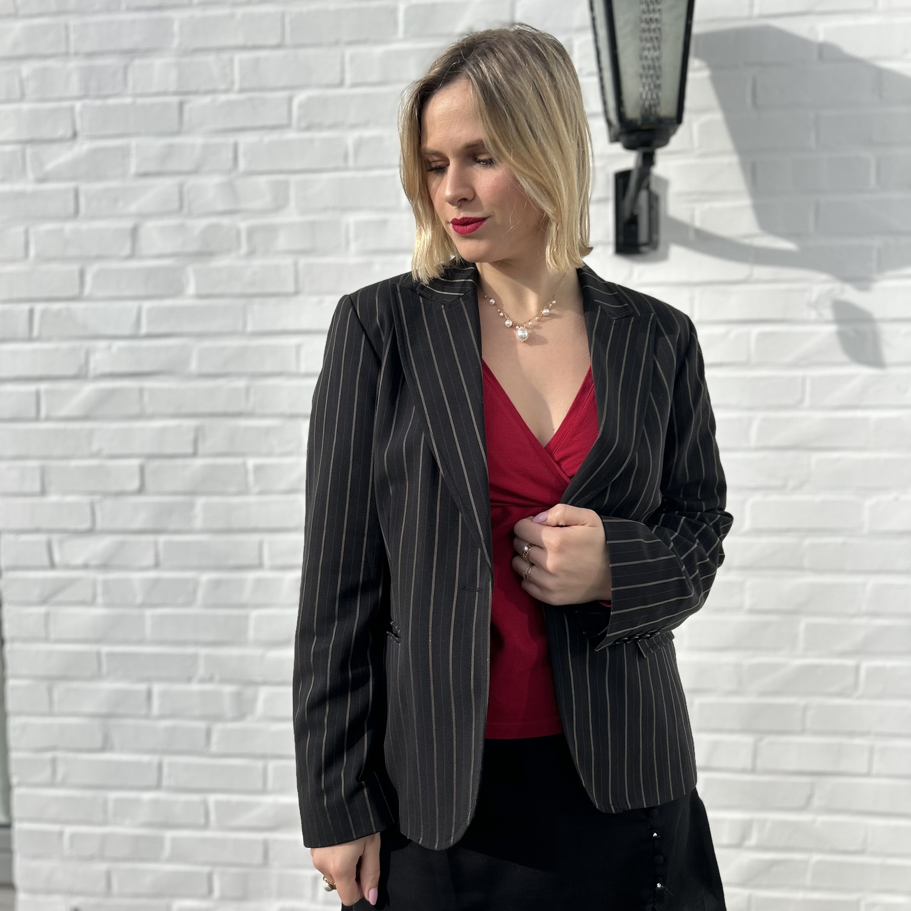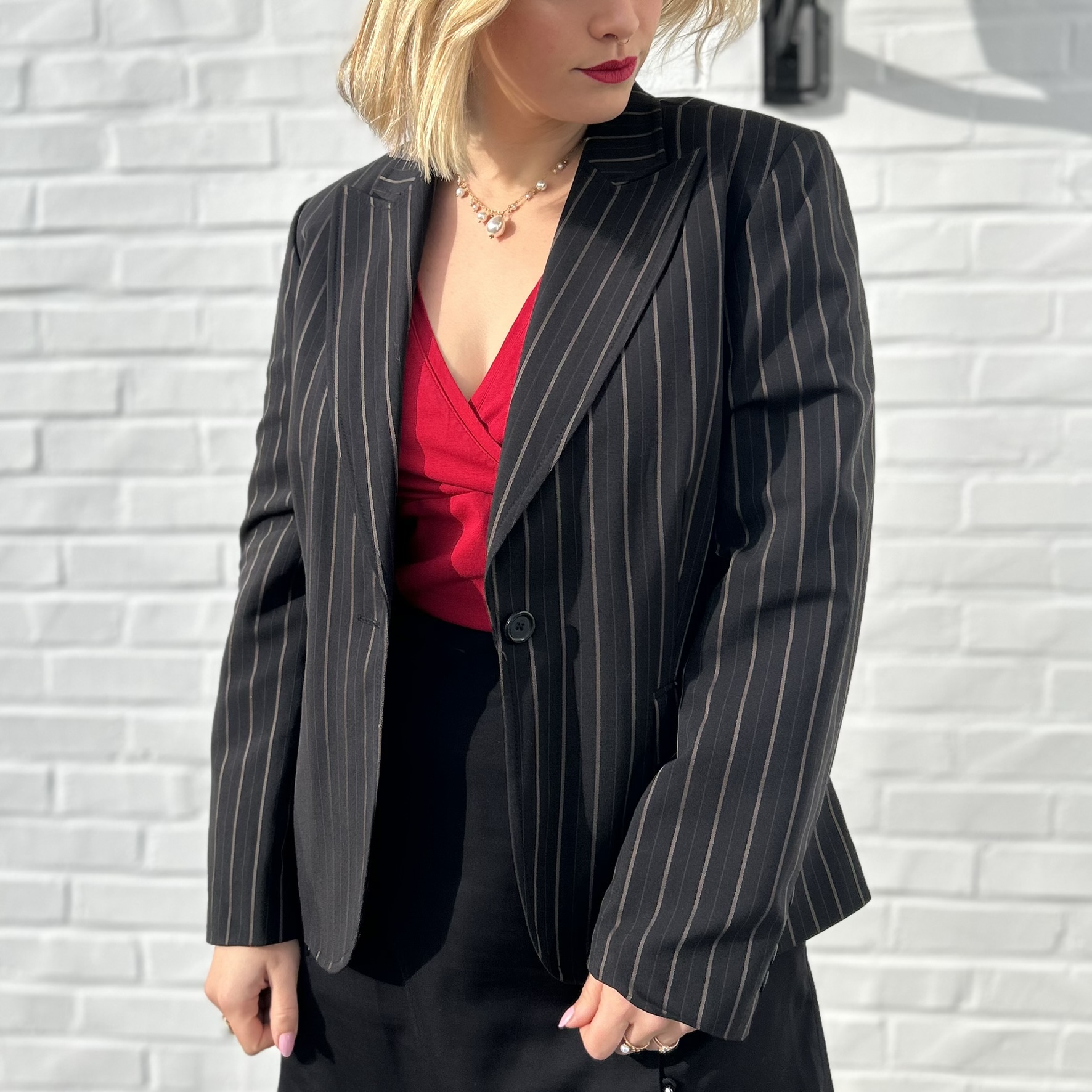 Blazer Vintage. Marque “Yessica” by C&A. Noir avec des lignes beige/grise.