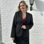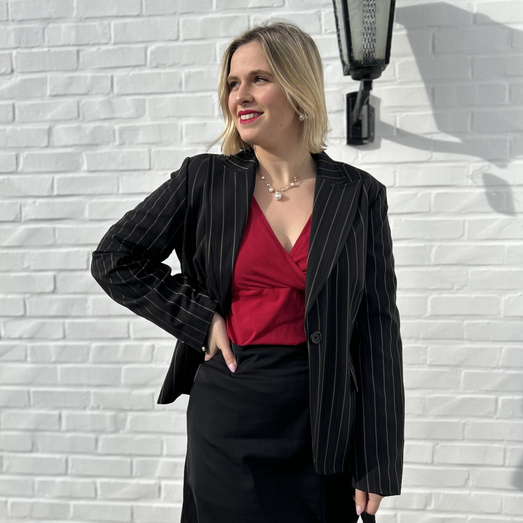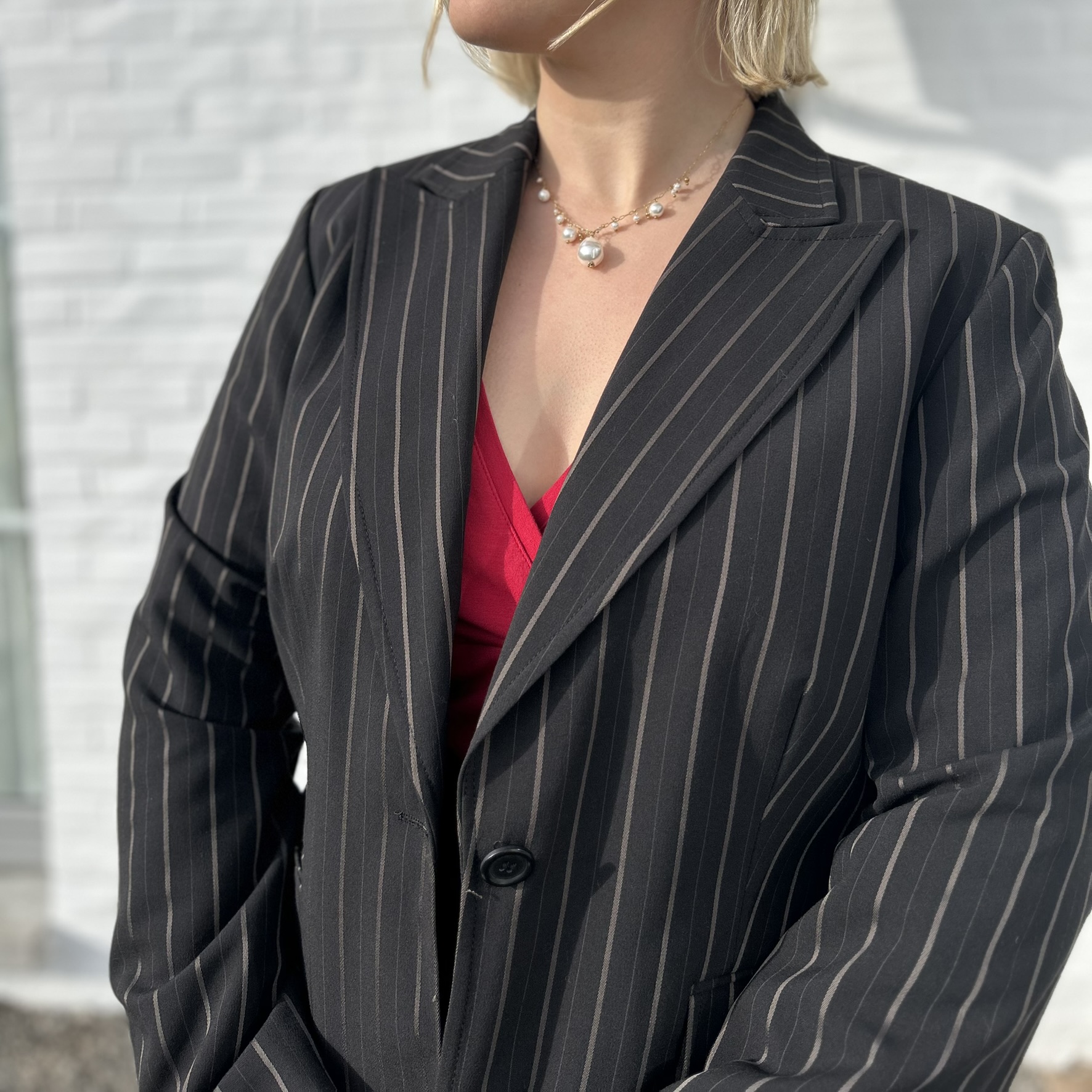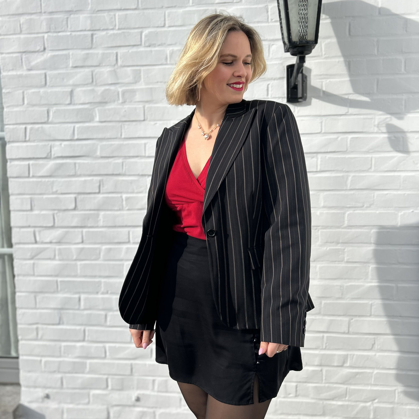 Blazer Vintage. Marque “Yessica” by C&A. Noir avec des lignes beige/grise.