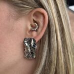 Boucles d’Oreilles Argentées Plaques Rectangles Plissées Brillantes.