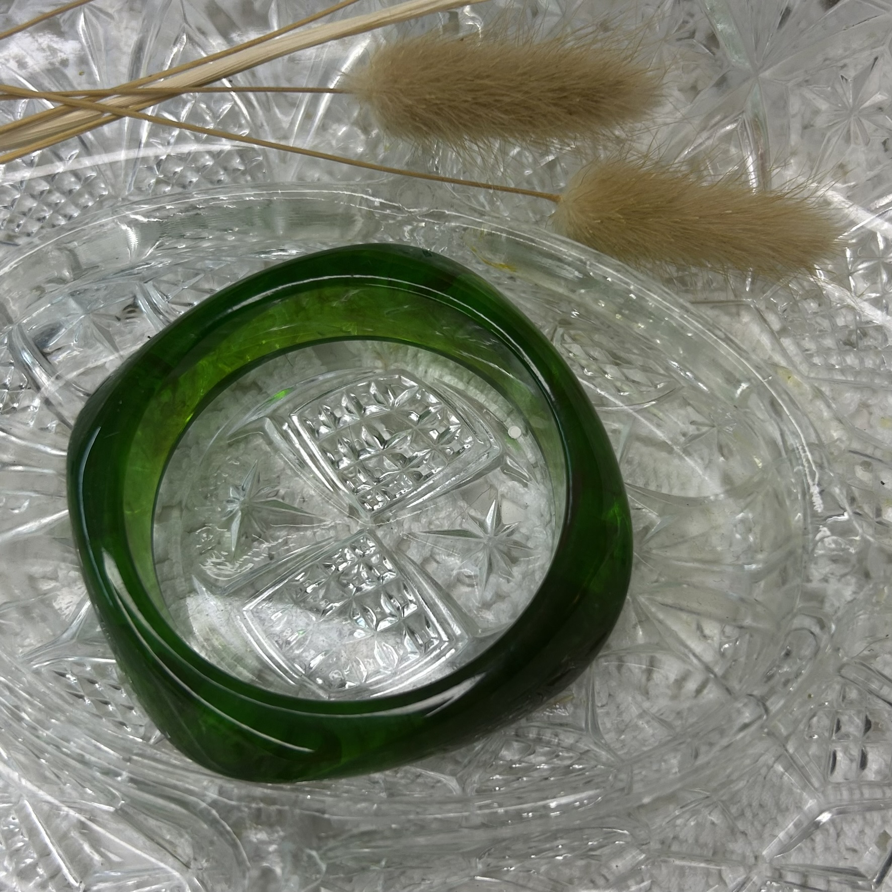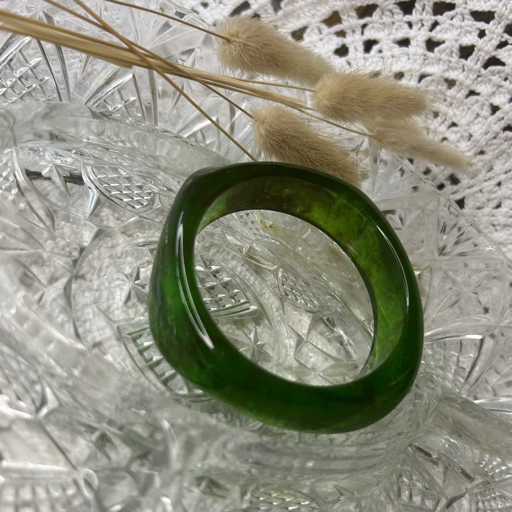 Bracelet Jonc Forme Carré Résine Vert Émeraude