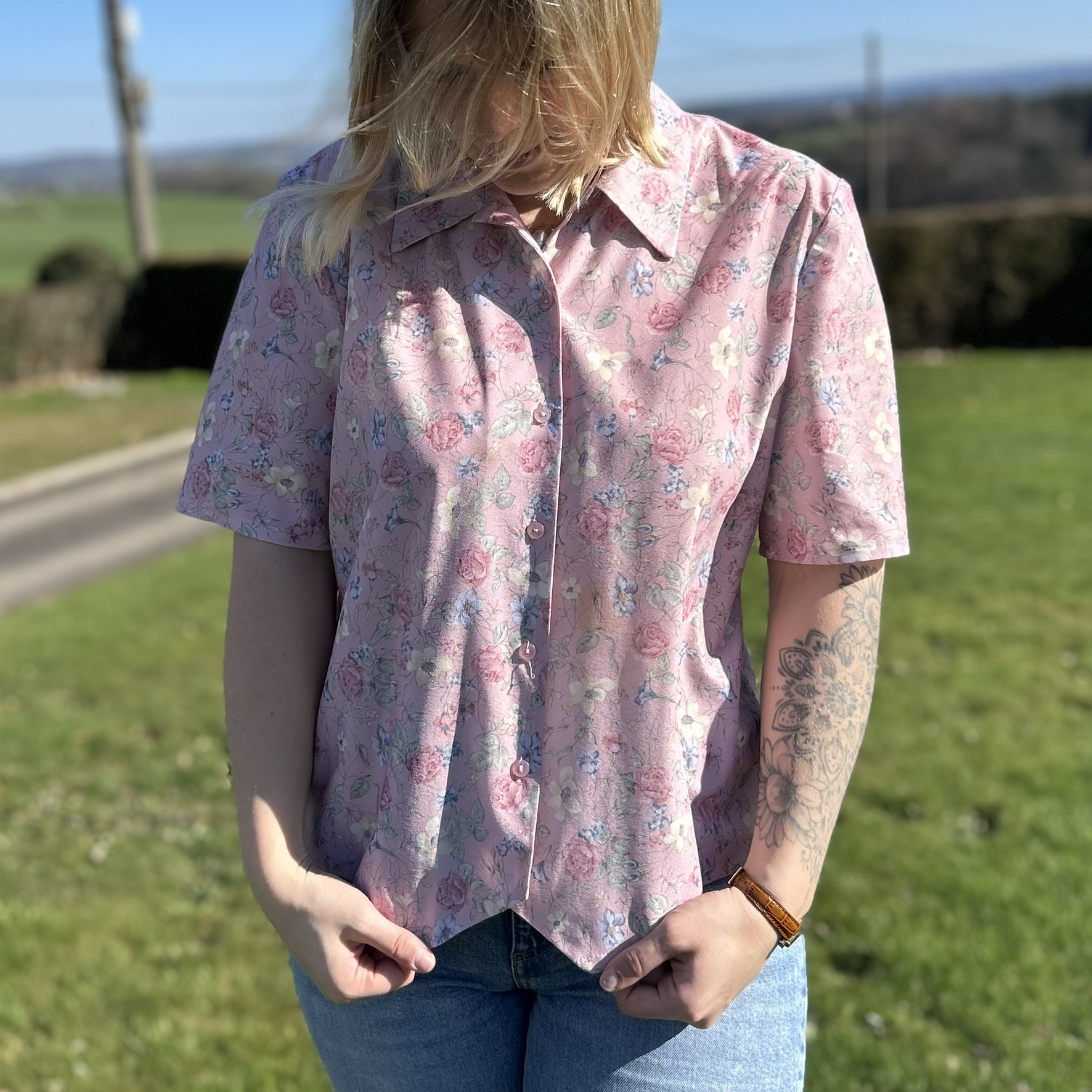 Chemisier Vintage. Marque “Decade” by Kiabi. Couleur Comme sur les photos les plus sombre. Tissus transparent.