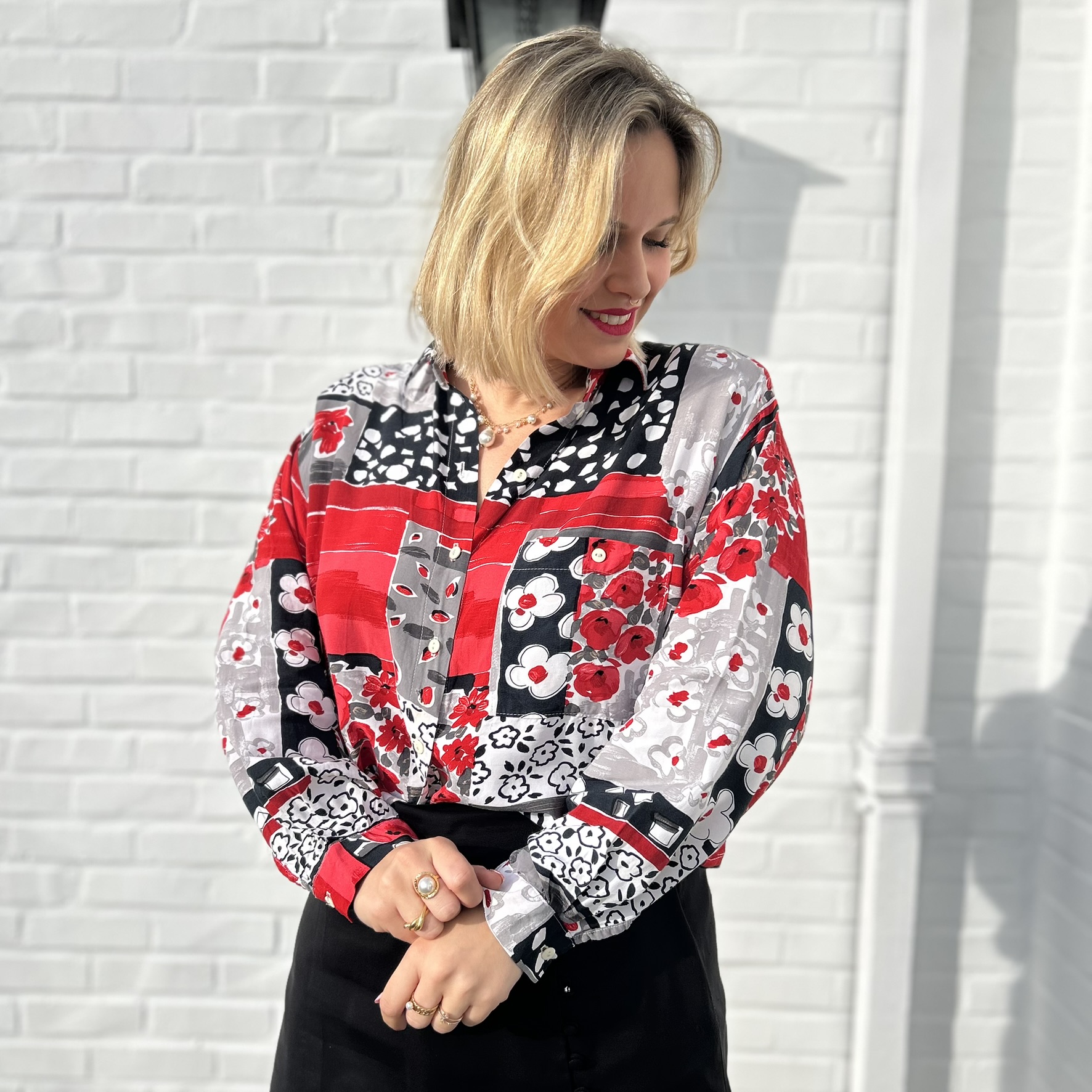 Chemisier Fleurs rouge