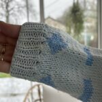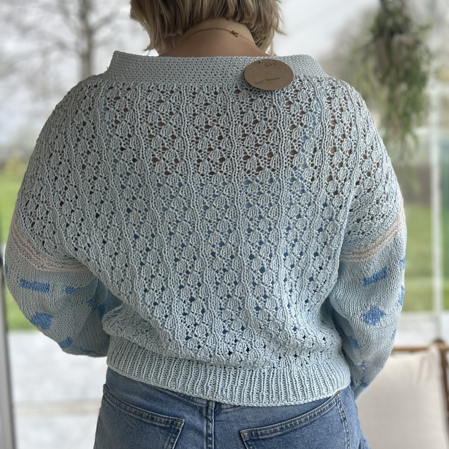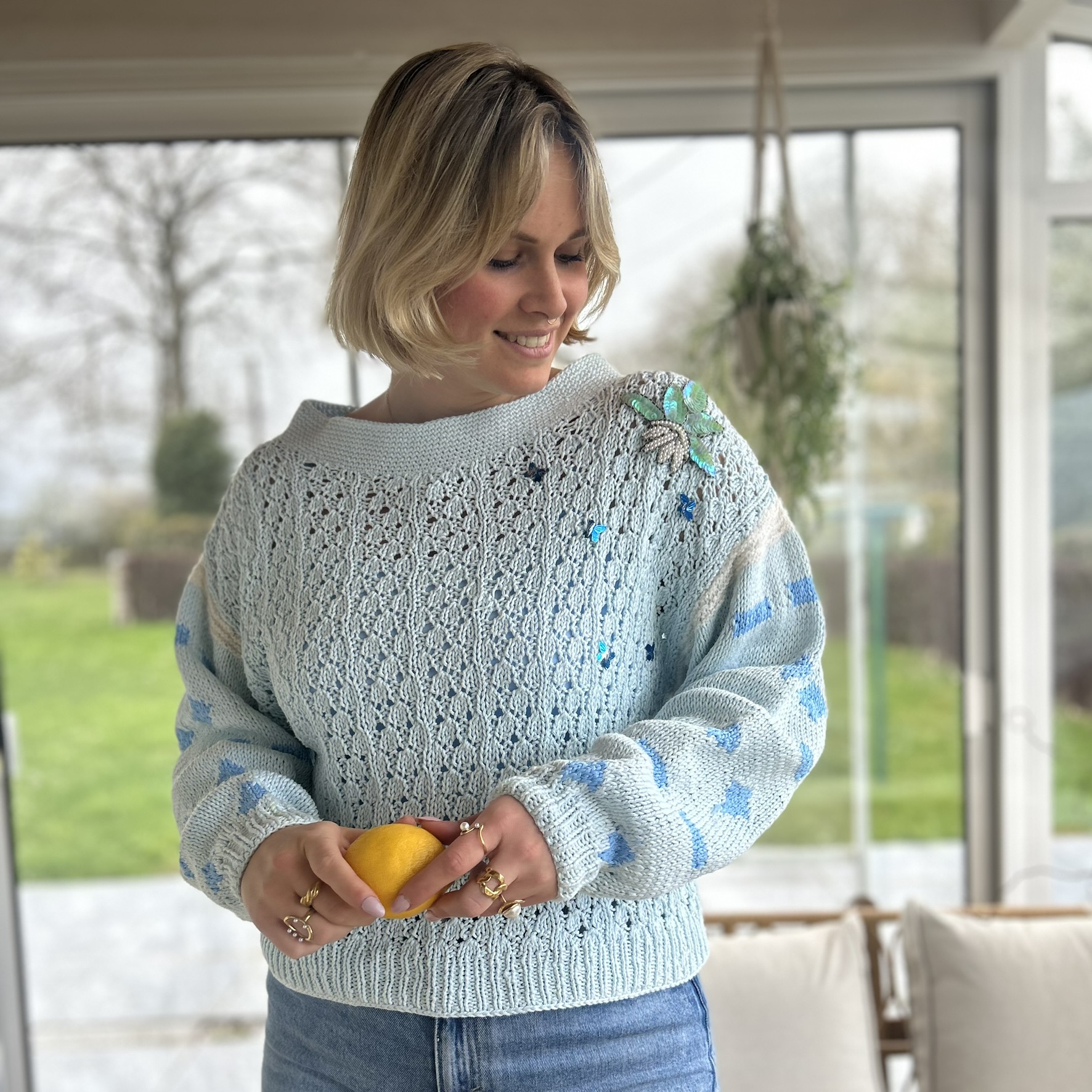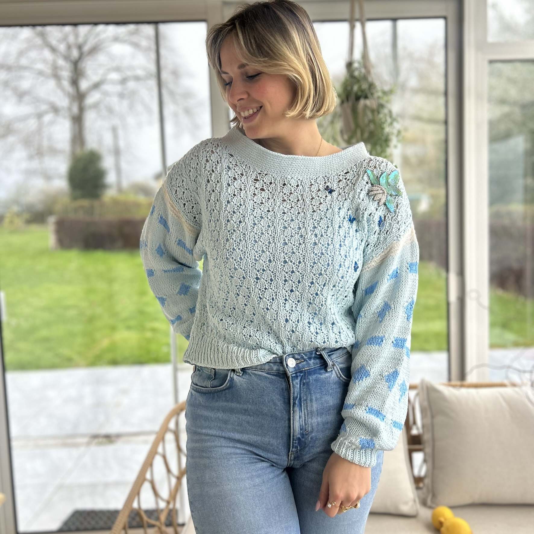Pull Vintage fait main. Strass fleurs et papillons. Couleur comme sur les photos. Col bateau