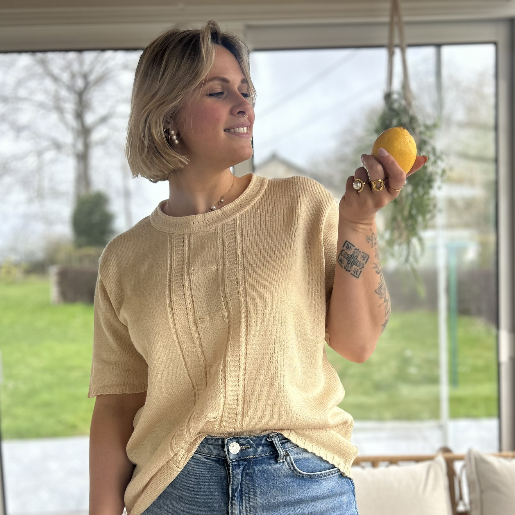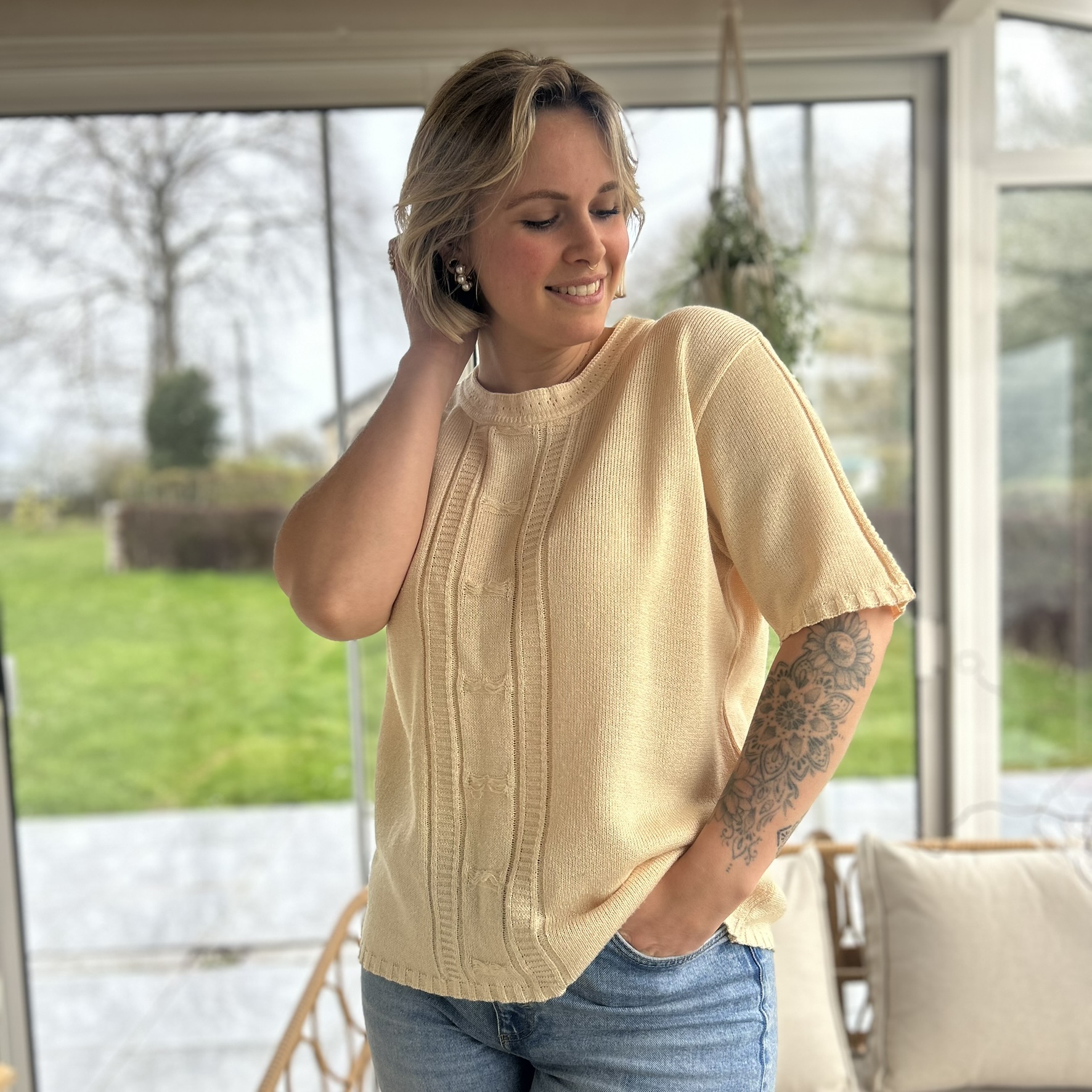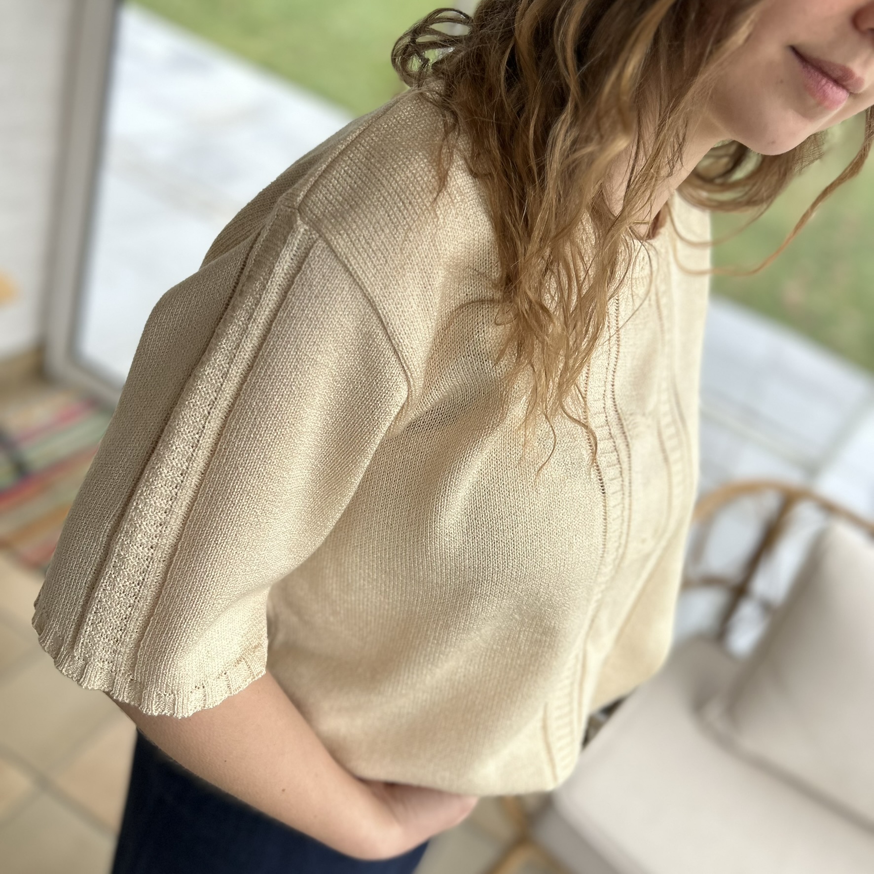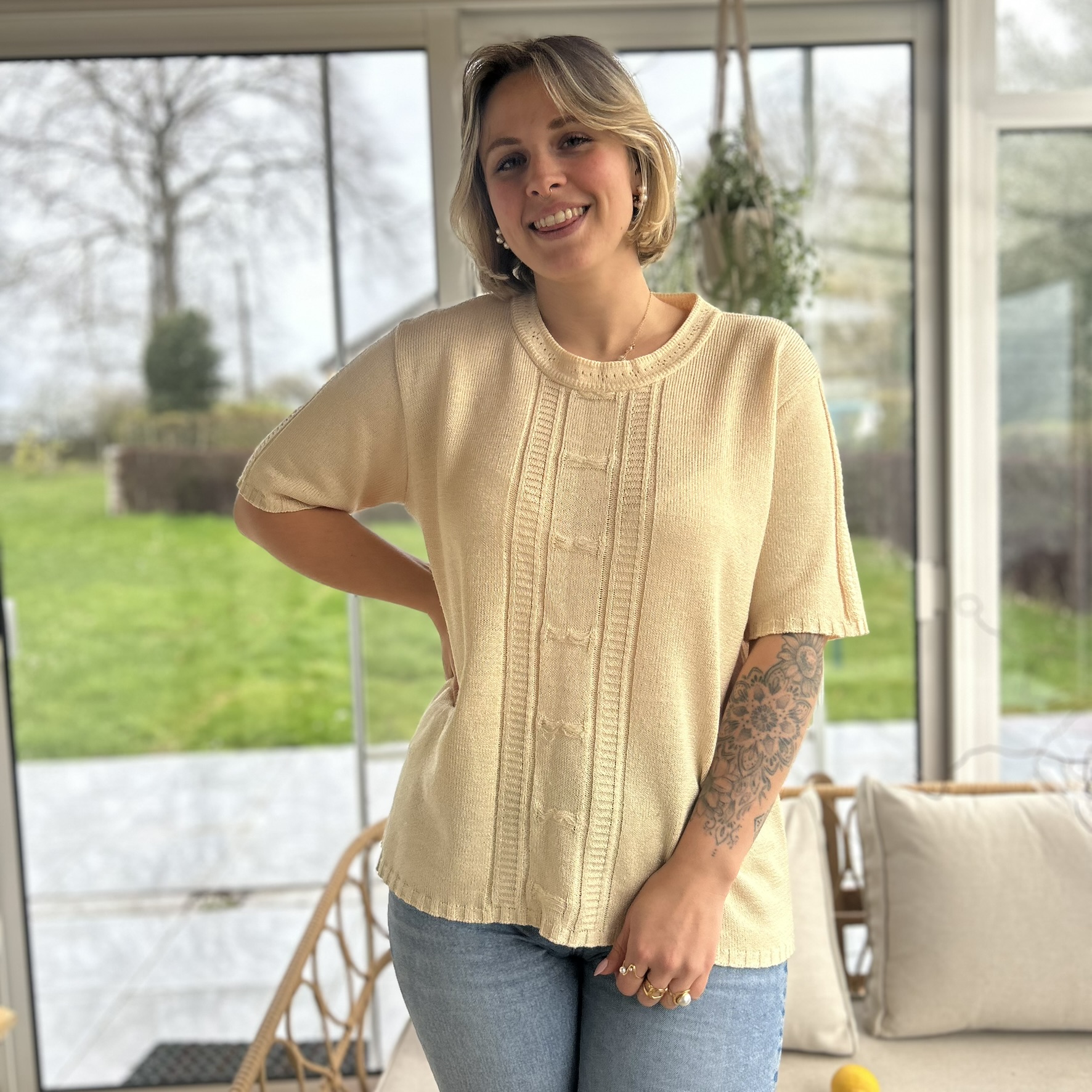 Pull jaune courtes manches