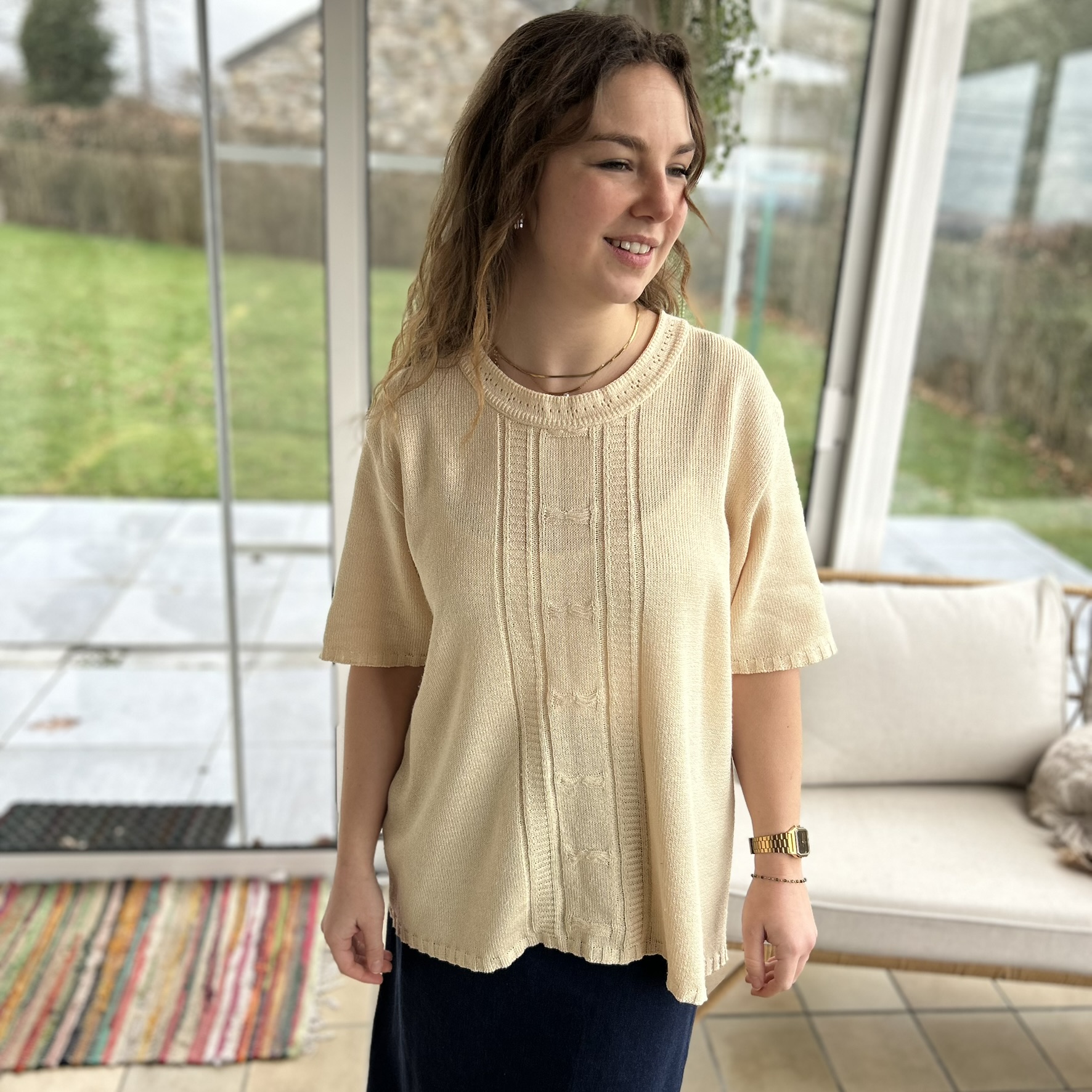 Pull Vintage. Couleur jaune beurre comme sur les photos.