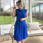 Robe vintage. Marque ” TODAY”. Couleur comme sur la photo. Ajustable dans le dos. Pinces au niveau des hanches