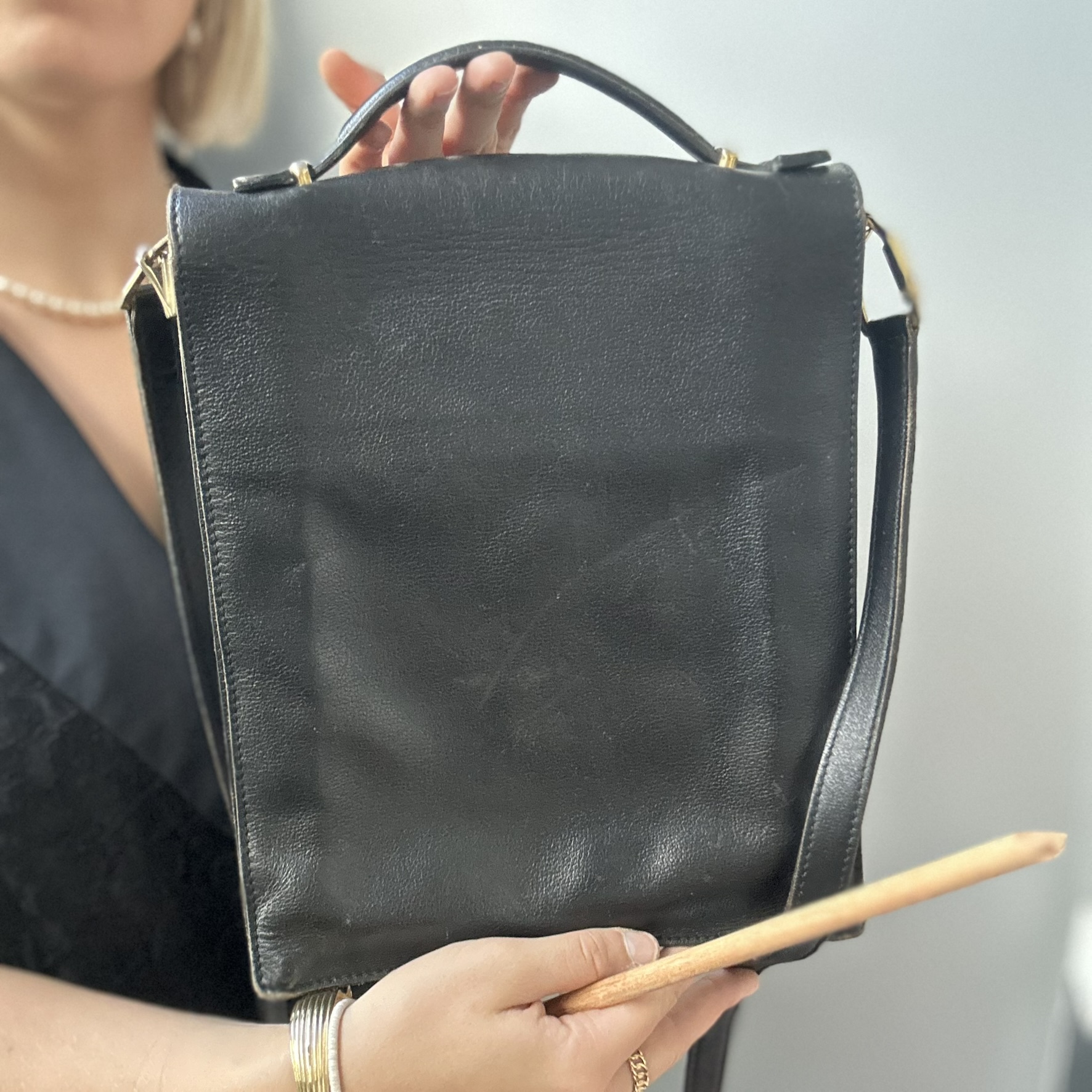 Sacoche Vintage. Cuir de Vachette. Marque “Gerard Henon”. Made in France.