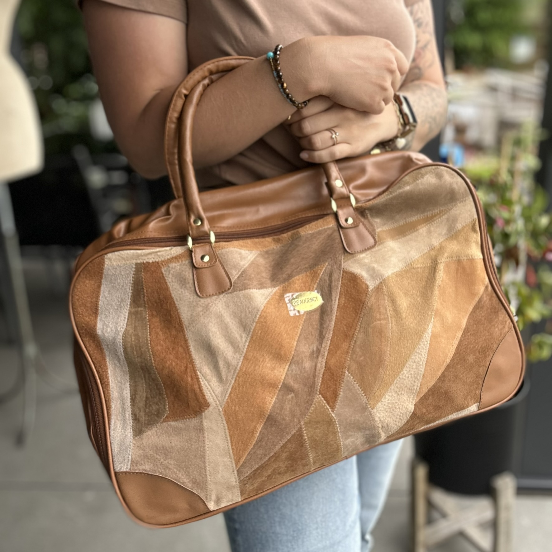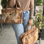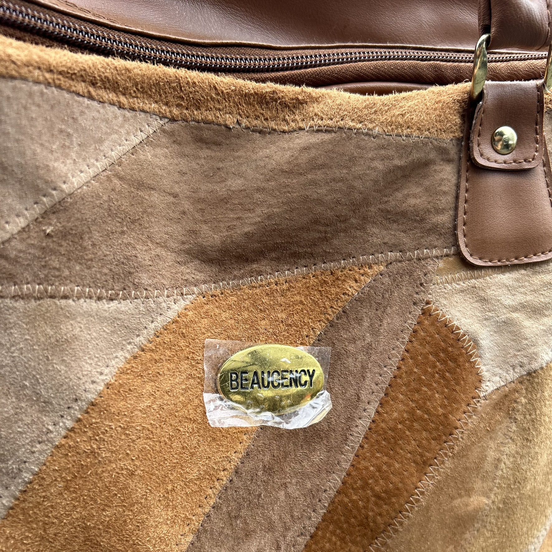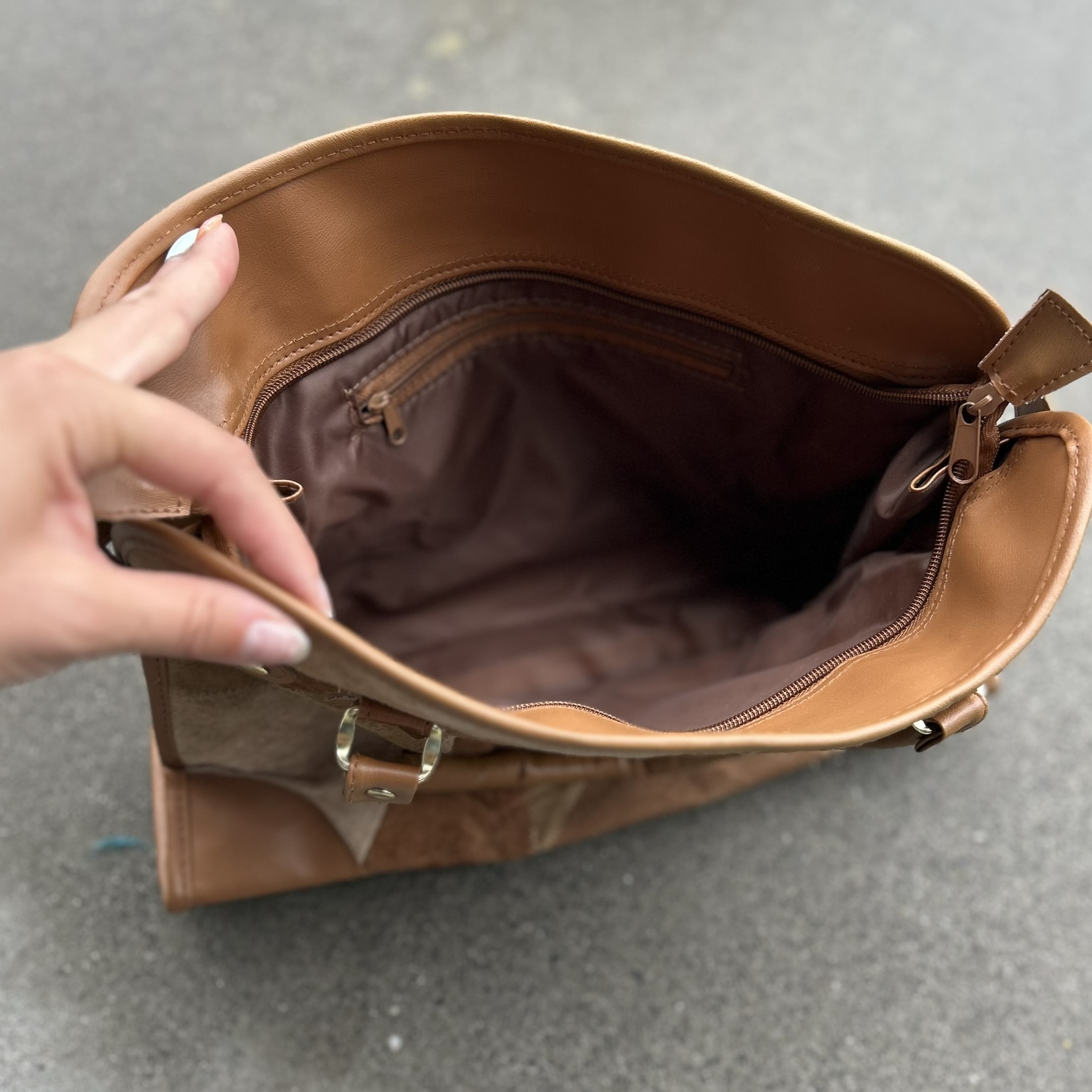 Le grand à une large ouverture. L’avant du sac (Patchwork) est en cuir.